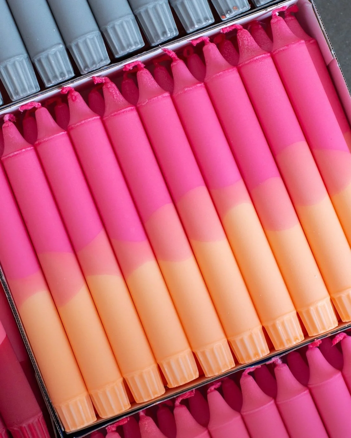 Mit den farbenfrohen Tischkerze von Nordtrice zieht sofort gute Laune ein! Jede Kerze ist ein kleines Unikat, handverziert in Kopenhagen und inspiriert von der Leichtigkeit skandinavischer Sommerabende. Versüßen aber natürlich jeden Abend.